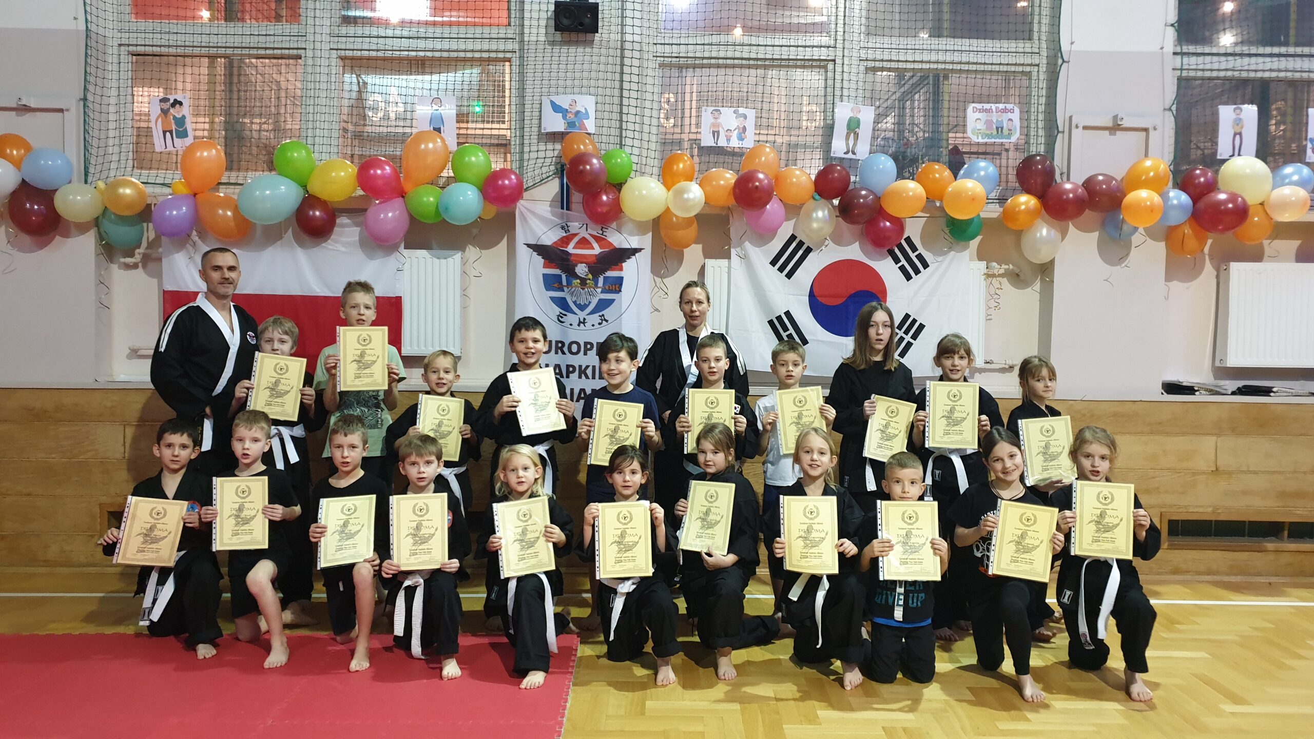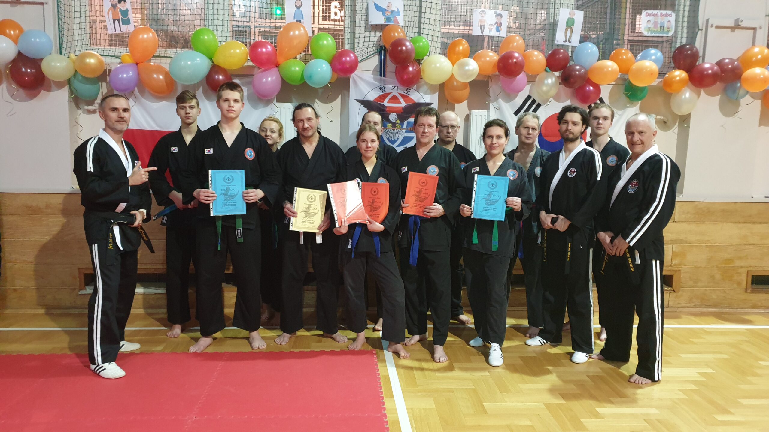 Oj, działo się poczas ostatniego Noworocznego Seminarium Hapkido. Trzygodzinny trening przeprowadzili trenerzy: dr hab. Katarzyna Sterkowicz-Przybycień prof. AWF (4 Dan), Rafał Przybycień (4 Dan), Wiesław Delekta (1 Dan) i Jacek Kulig (1 Dan). Trening podzielony był na dwie części. W pierwszej udział wzięli najmłodsi adepci sztuki walki hapkido, młodzież i dorośli. Wspólnie doskonalili pady, kopnięcia, uderzenia i techniki samoobrony ho shin sul. Techniki Hapkido przeplatane były wspólnymi zabawami. Druga część przeznaczona była tylko dla dorosłych i zaawansowanych podczas, której ćwiczono techniki z długim kijem jang bong, uklady formalne hyung oraz kombinacje kopnięć i uderzeń.